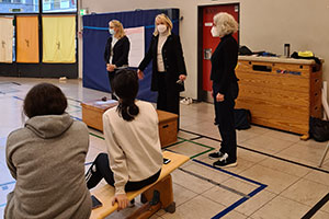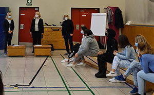 In einem vierstündigen Workshop haben die auf Prävention von sexueller Gewalt und Missbrauch spezialisierte Kriminalhauptkommissarin a.D. Heike Afflerbach-Hintzen und die Diplom-Sportwissenschaftlerin und Trainerin für Gewaltprävention, Selbstbehauptung und -verteidigung Dimitra Bouzikou mit den Schülerinnen das Thema sexuelle Übergriffigkeit behandelt und praktisch Selbstbehauptung geübt. Selbstbehauptung – das beginnt damit, einem unguten Bauchgefühl, das etwas nicht richtig sein könnte, zu folgen – Privatleben und im Berufsleben. Wie Mädchen und Frauen dann reagieren können, haben die Trainerinnen mit vielseitigen Übungen, wie dem selbstbewussten Stehen, mutigem und kraftvollem Schreien oder auch dem konsequenten „Gehen Sie weg!“-Sagen, mit ihnen geübt. Auch der „Lobby für Mädchen e.V.“ stellte das umfassende Angebot der Einrichtungen in Köln vor.